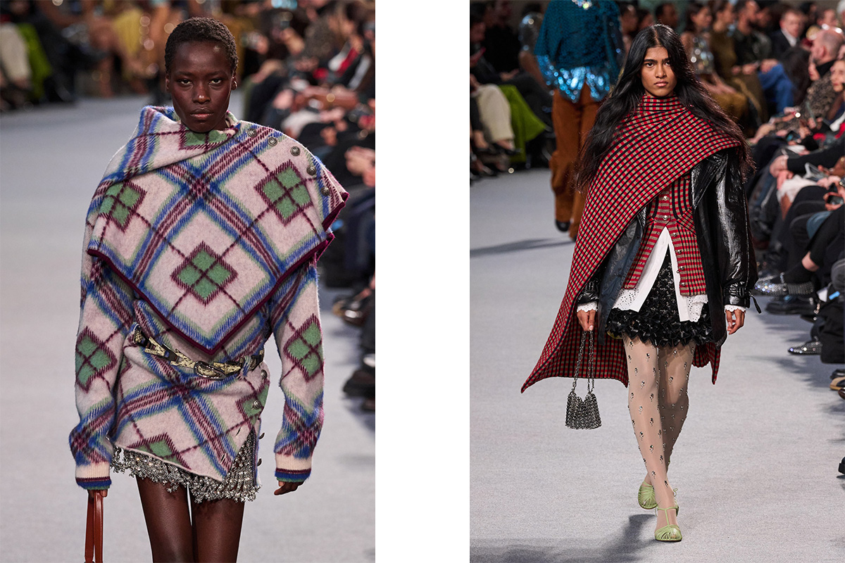 Several designers have made a strong case for the poncho's return in recent seasons. Cast your mind back to Autumn Winter 24, and Chemena Kamali riffed on the poncho silhouette in various forms at Chloe — from cropped leather styles with a utilitarian edge, to white lace capes draped delicately over models' shoulders. That same season, Moschino had us dreaming of being wrapped up in ponchos of the knitted variety, cut on an angle so as to gently graze the ground. Rabanne followed suit, imagining the poncho in heavier, outwear-ready fabrics, juxtaposed in a variety of vibrant prints. And at Bottega Veneta’s Autumn/Winter 2024 show, Matthieu Blazy offered up ponchos in soft, architectural knits, often oversized and gently draped at the neck.