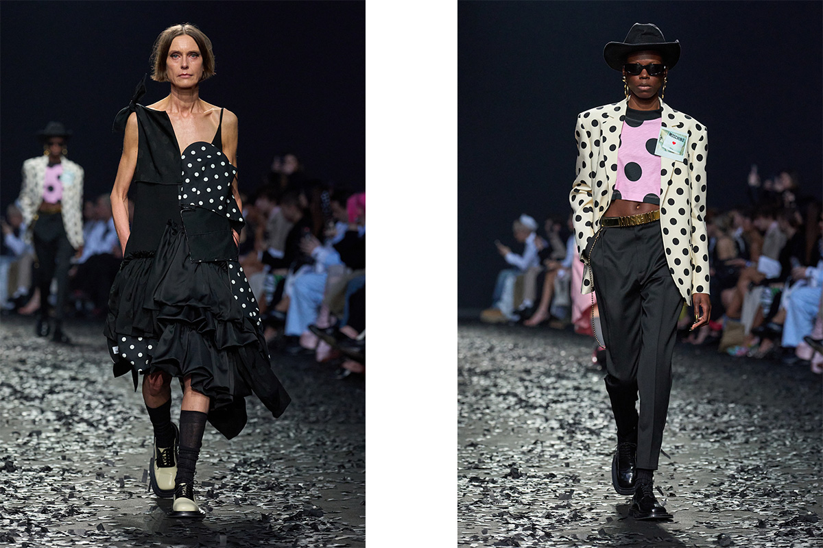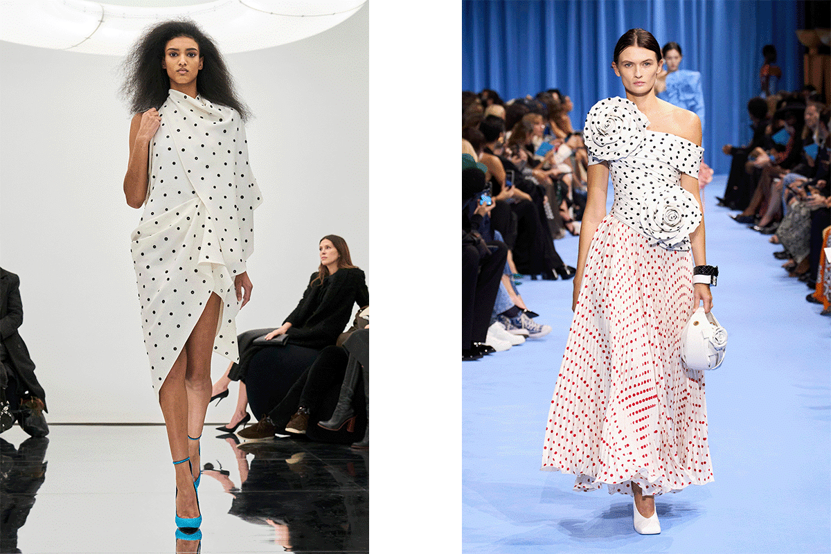 And in the Autumn Winter 2025 collections, the print proved itself a mainstay. This season, the likes of Moschino, Valentino, and Sandy Liang made a case for polka dots that whispered, rather than shout, whether that be woven subtly into the layers of a dress, as a single statement in the form of a jacket, or draped over the shoulders in a silk scarf.