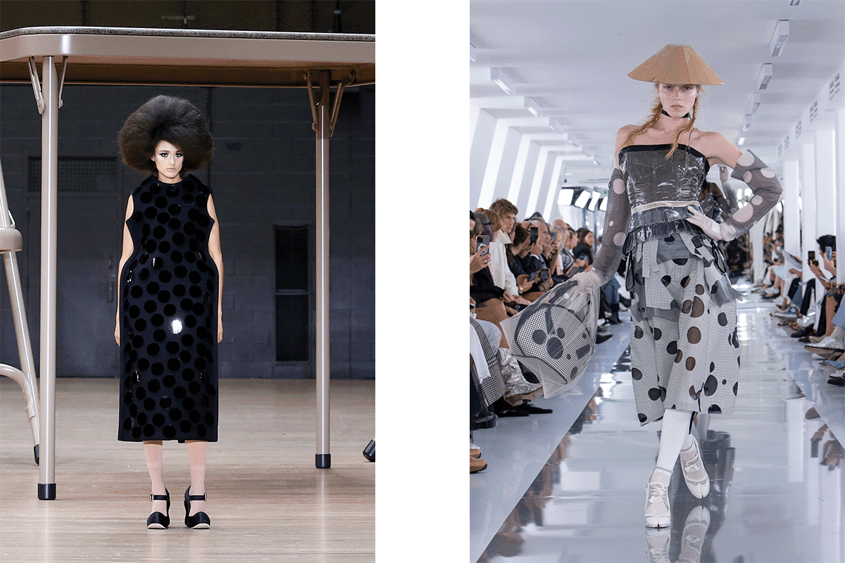 Fast forward to 2025, and we find ourselves in the midst of yet another polka dot renaissance. The pattern cropped up on several major runways during the spring/summer ‘24 shows, this time shedding its ultra-feminine origins, to take on an edgier, more grown-up feel. At Stella McCartney, flouncy polka dot tops were dressed down with baggy denim, while mini dresses were crafted from daringly draped and dotted fabric that sat high on models’ thighs. Maison Margiela and Marc Jacobs subverted the norm, with oversized spots cropping up on dresses at both House’s shows, while Alaïa and Balmain had us dreaming of an event-ready wardrobe consisting entirely of polka dots.