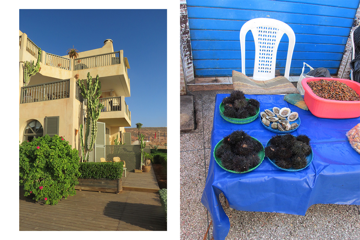 My friend Abder has a few places to stay in Mirleft, and we slept in a comfortable and spacious apartment facing the sea. We were lucky to wake up every morning to fresh swell glistening outside our window, and you can catch the sunset on the rooftop.