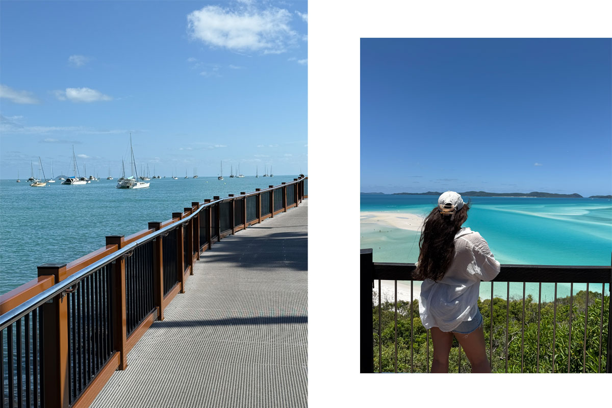 The Airlie Beach boardwalk - it starts at The Mirage and winds its way around the coast eventually leading you into town. The views are incredible. Expect it to be about an hour to hour and half round trip depending on your walking speed.