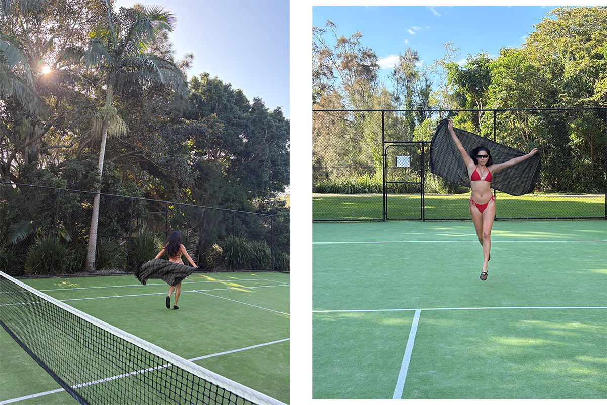 From the moment she arrived, Gomes embraced the ease of her surroundings – unpacking her bags, slipping into a swimsuit, and settling into a slower pace. Between tennis matches, poolside cocktails, and a spa ritual that included gold leaf facials and dry brushing, Gomes found a rhythm that was all her own. It was a moment of pause, but also of presence — one marked by coconut milk hot chocolates, the smell of frangipanis and salty sea air, and the joy of a white bed waiting at the end of the day.
