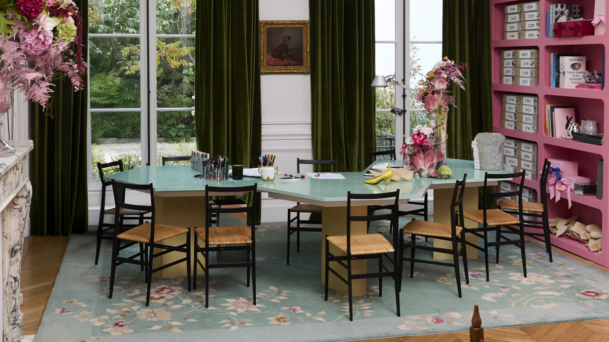 “The journey begins with the grand staircase, then flows into the salons, the garden, and finally the studio. It’s like entering the Maison’s creative anatomy. Even my office, with its soft pinks and greens, the Chinese Art Deco rug, the archive boxes, is part of that experience. It’s a place where collections begin as raw thoughts, colours, and intuitions.”
