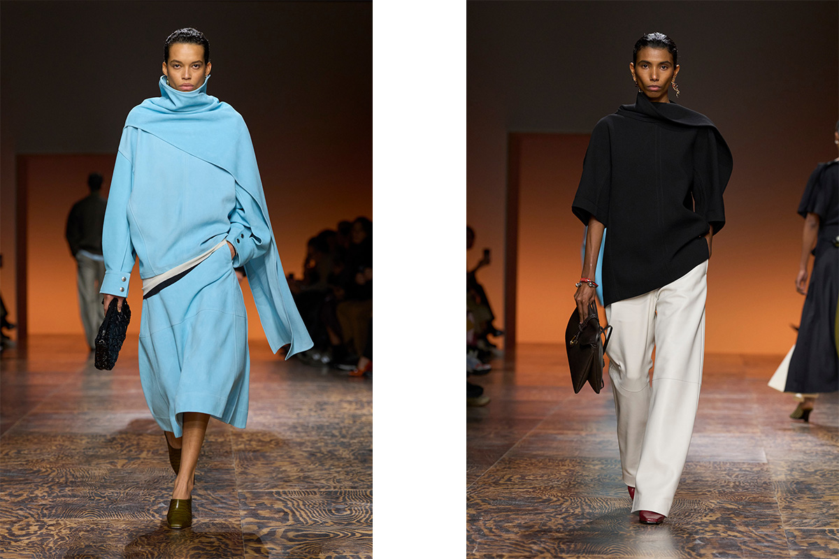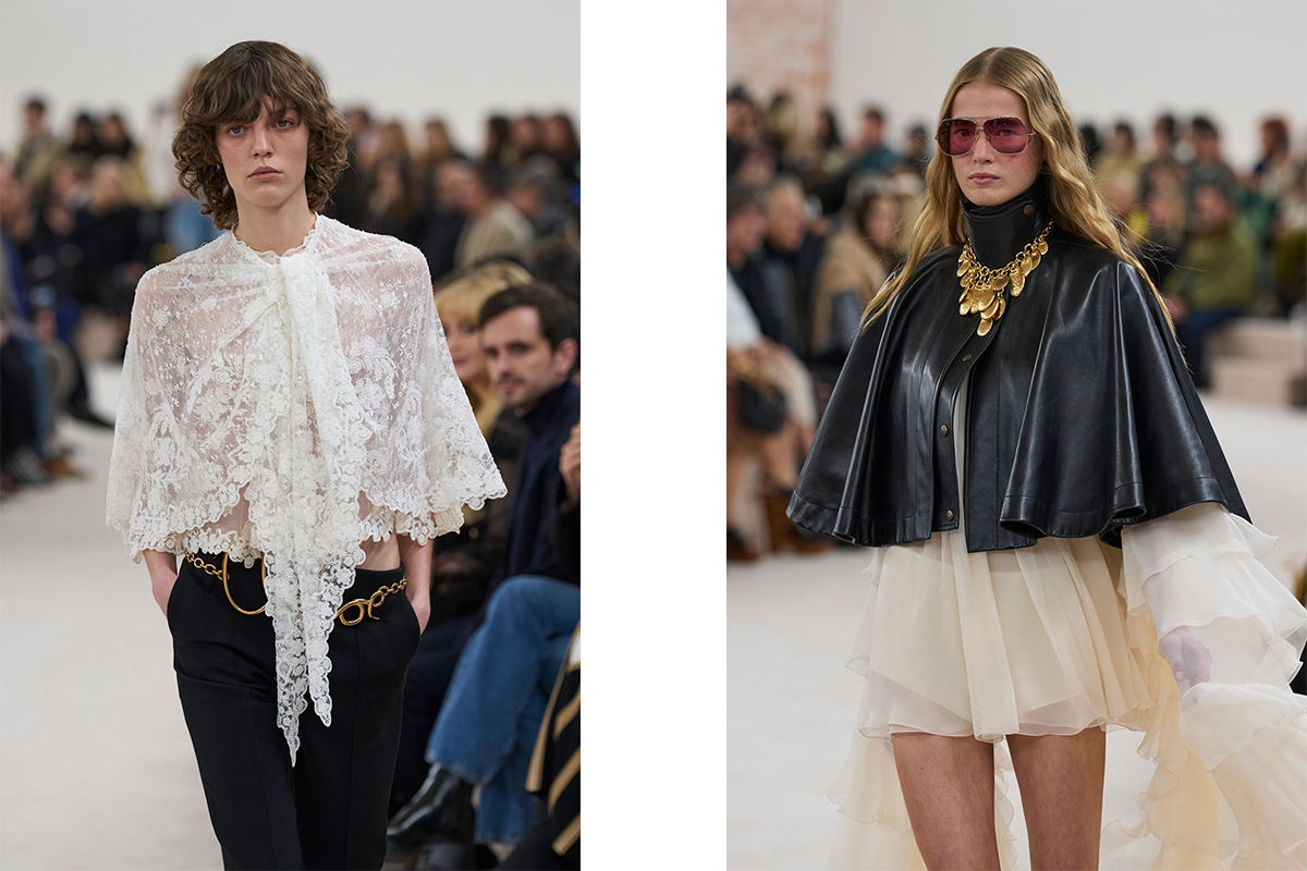 Several designers have made a strong case for the poncho's return in recent seasons. Cast your mind back to Autumn Winter 24, and Chemena Kamali riffed on the poncho silhouette in various forms at Chloe — from cropped leather styles with a utilitarian edge, to white lace capes draped delicately over models' shoulders. That same season, Moschino had us dreaming of being wrapped up in ponchos of the knitted variety, cut on an angle so as to gently graze the ground. Rabanne followed suit, imagining the poncho in heavier, outwear-ready fabrics, juxtaposed in a variety of vibrant prints. And at Bottega Veneta’s Autumn/Winter 2024 show, Matthieu Blazy offered up ponchos in soft, architectural knits, often oversized and gently draped at the neck.