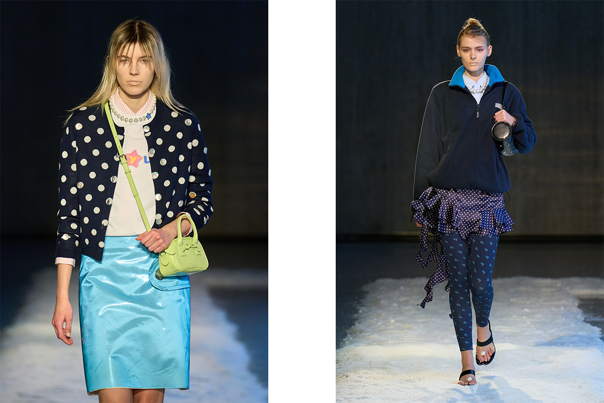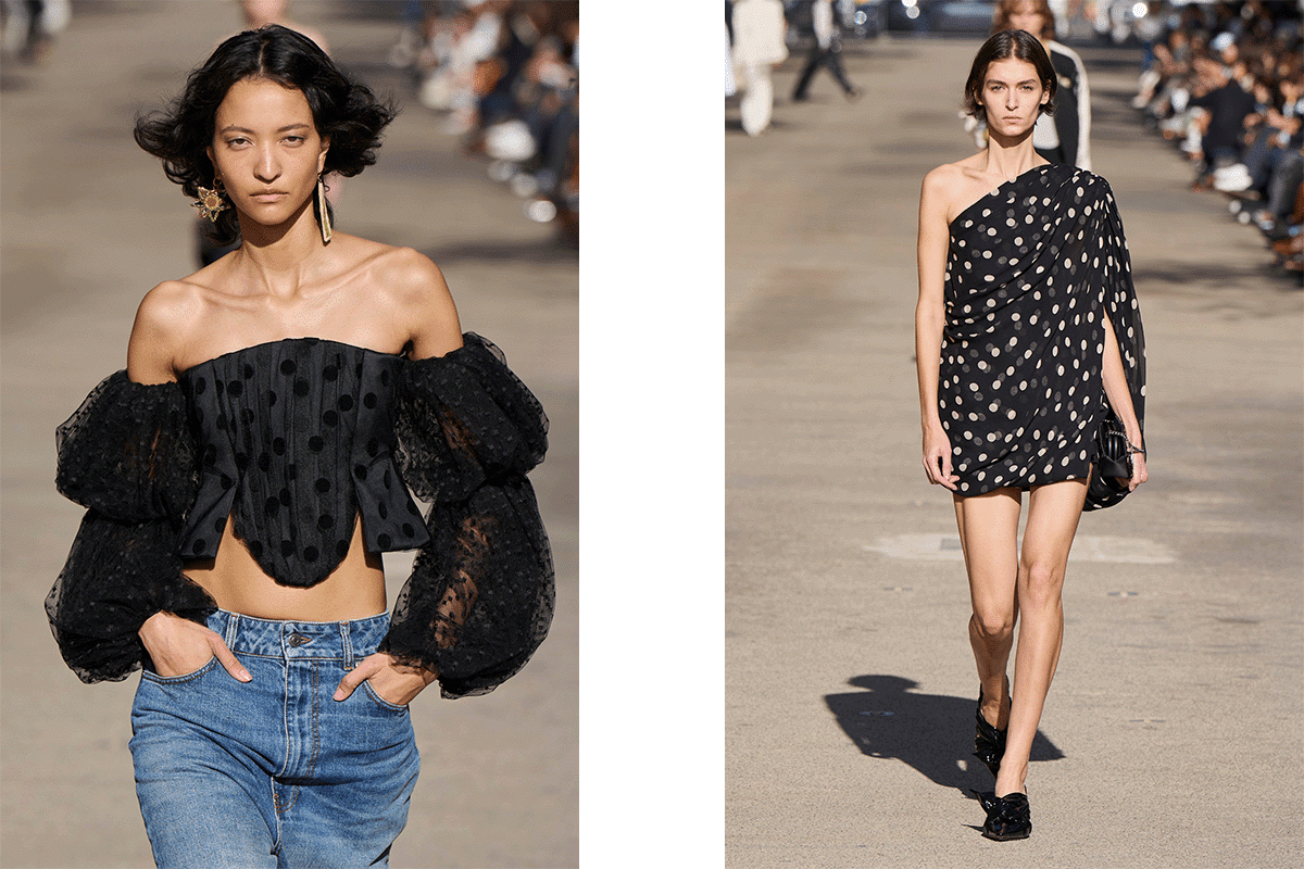 Fast forward to 2025, and we find ourselves in the midst of yet another polka dot renaissance. The pattern cropped up on several major runways during the spring/summer ‘24 shows, this time shedding its ultra-feminine origins, to take on an edgier, more grown-up feel. At Stella McCartney, flouncy polka dot tops were dressed down with baggy denim, while mini dresses were crafted from daringly draped and dotted fabric that sat high on models’ thighs. Maison Margiela and Marc Jacobs subverted the norm, with oversized spots cropping up on dresses at both House’s shows, while Alaïa and Balmain had us dreaming of an event-ready wardrobe consisting entirely of polka dots.