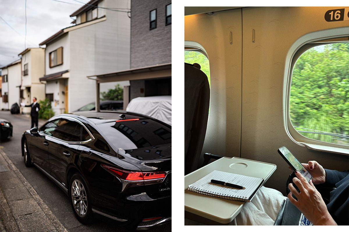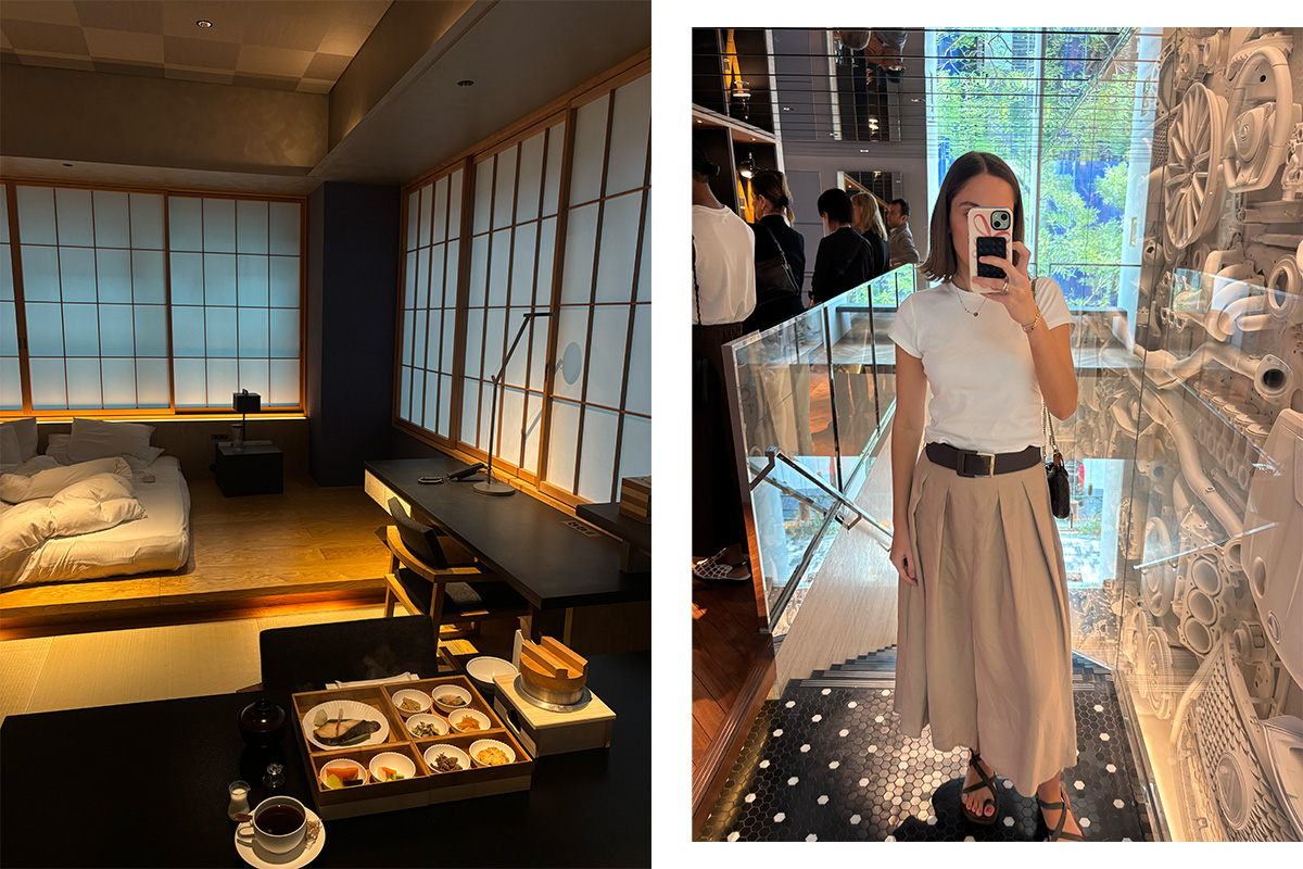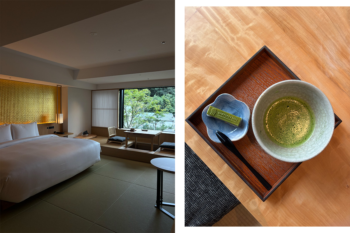 In the afternoon, it was time to board Japan's famed Shinkansen bullet train. The journey was smooth and silent — the only real telltale sign that we were actually in motion was the city landscape blurring into green as we moved west, towards Kyoto. When we arrived, we checked into the Banyan Tree Higashiyama – one of the most beautiful hotels I've ever experienced, which is surrounded by lush greenery, and framed by bamboo. A warm matcha was waiting in my room when I arrived, which was the perfect pick-me-up before the rest of our itinerary.