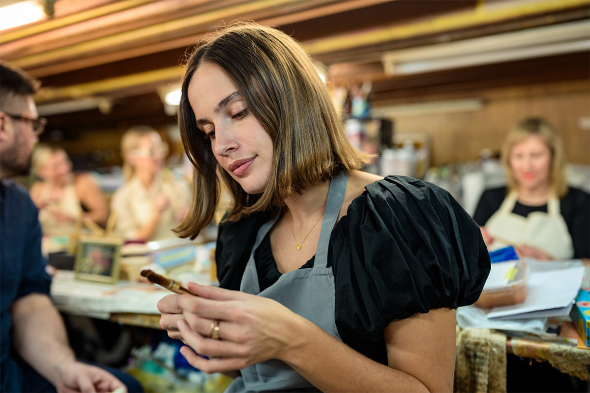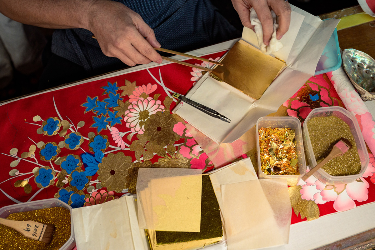 We spent the evening with Takumi master Nobumi Miyake at his kimono workshop, where he has been perfecting the art of hand-painted silk for over 30 years. Watching him lay gold leaf across fabric was hypnotic — the kind of patience and precision that only comes with time.