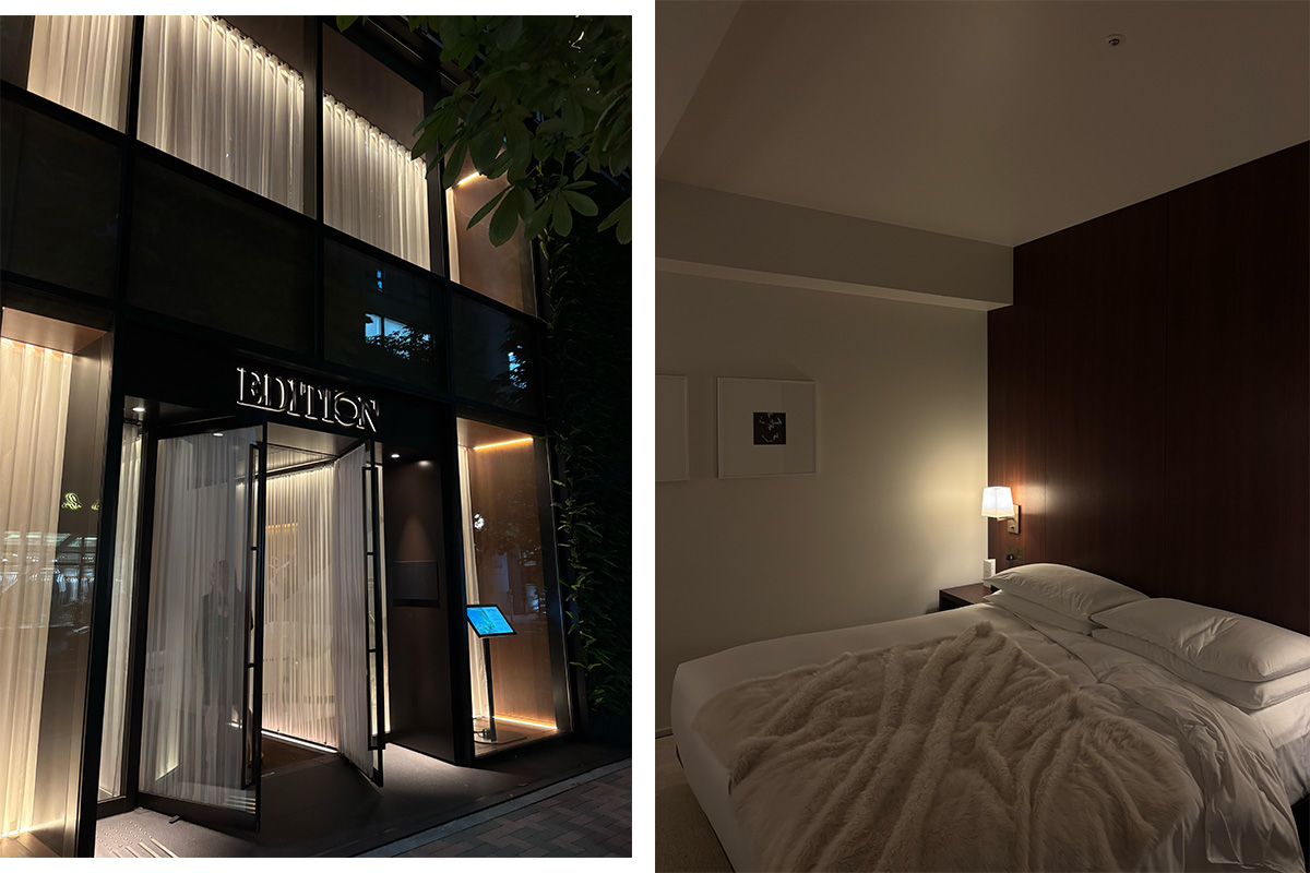 By late afternoon we were back in Tokyo, checking into The Tokyo EDITION, Ginza. The hotel is sleek but soft, with warm lighting and low, expansive lounges. Over cocktails at the rooftop bar, we talked about how Brahman Perera has translated these Japanese ideals into the LANDMARK by Lexus pavilion for Melbourne: the tactile surfaces, the listening-bar ambience, the interplay of AI and craft.