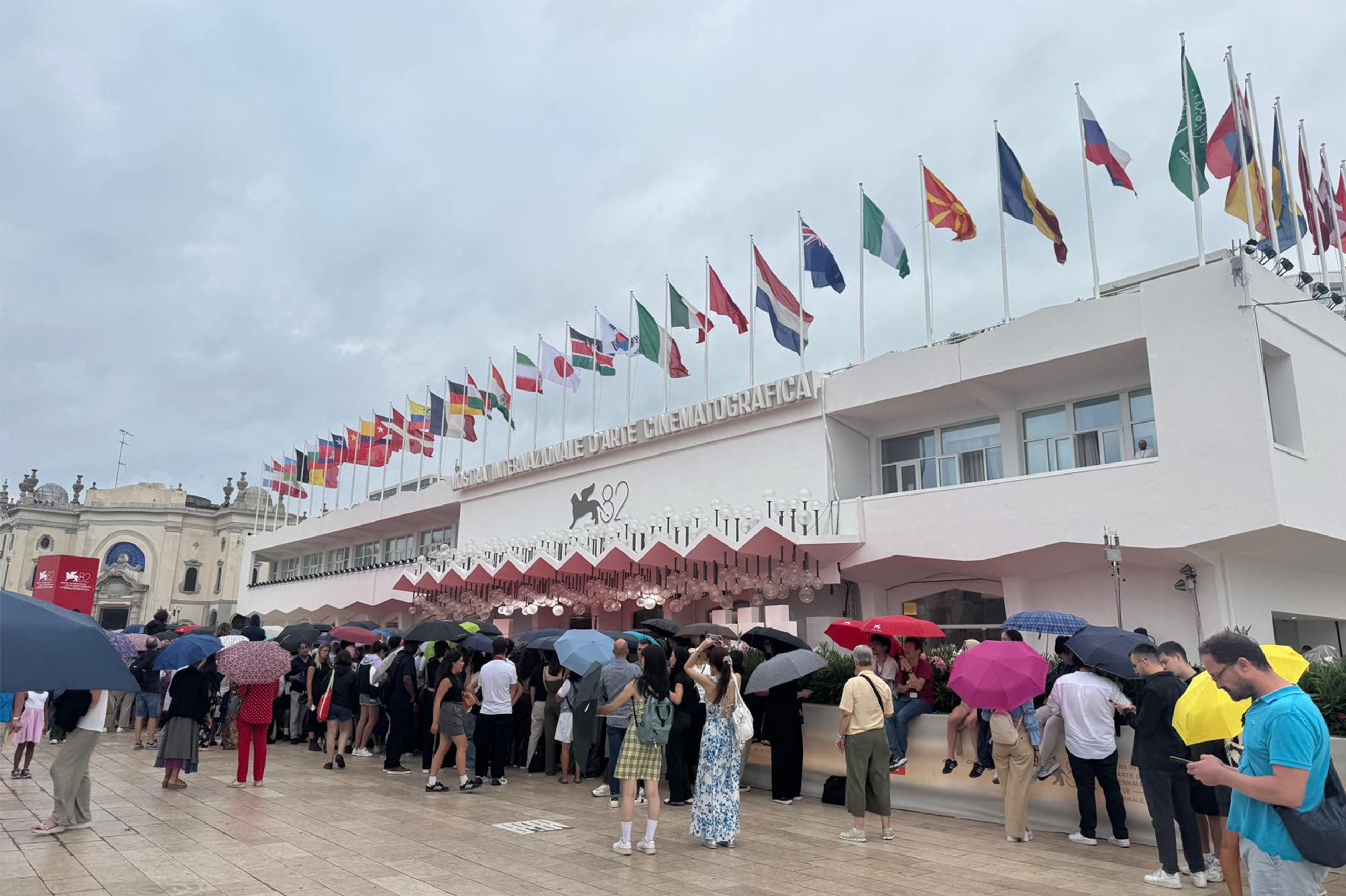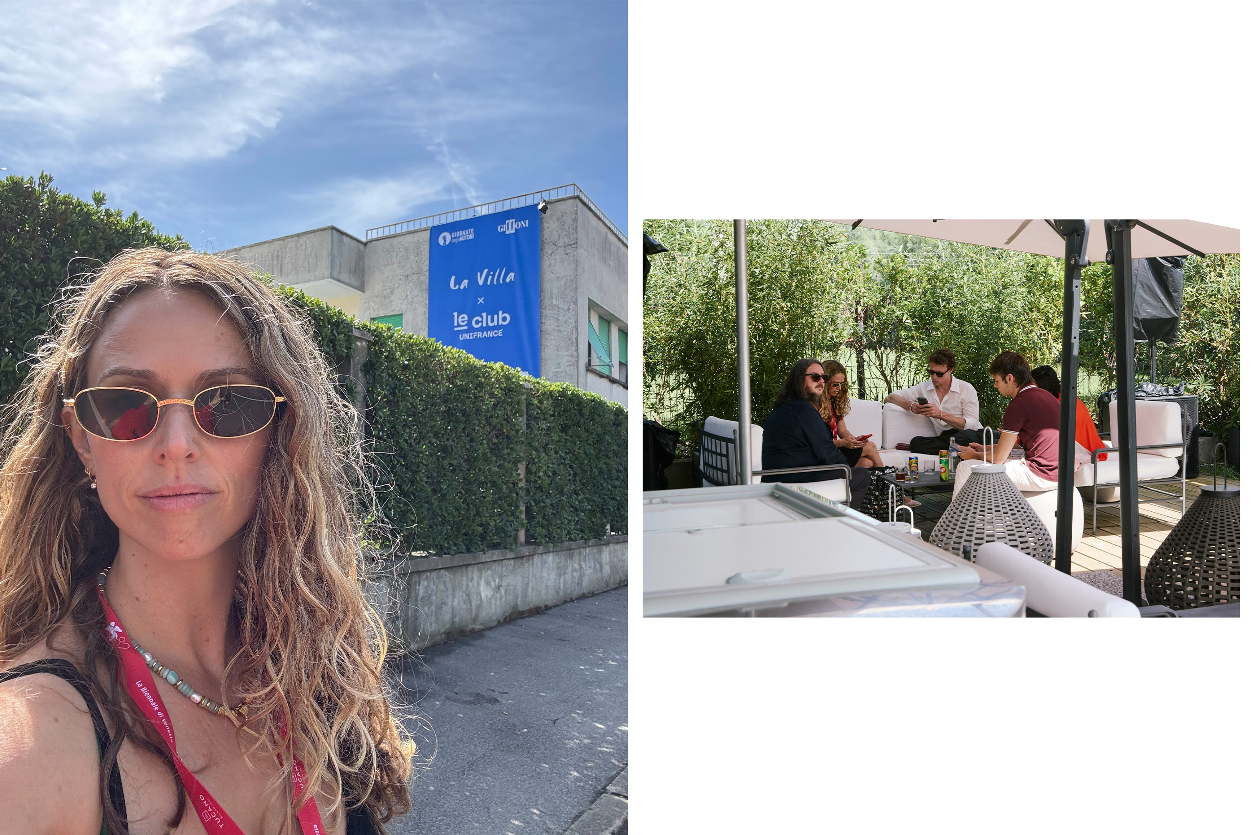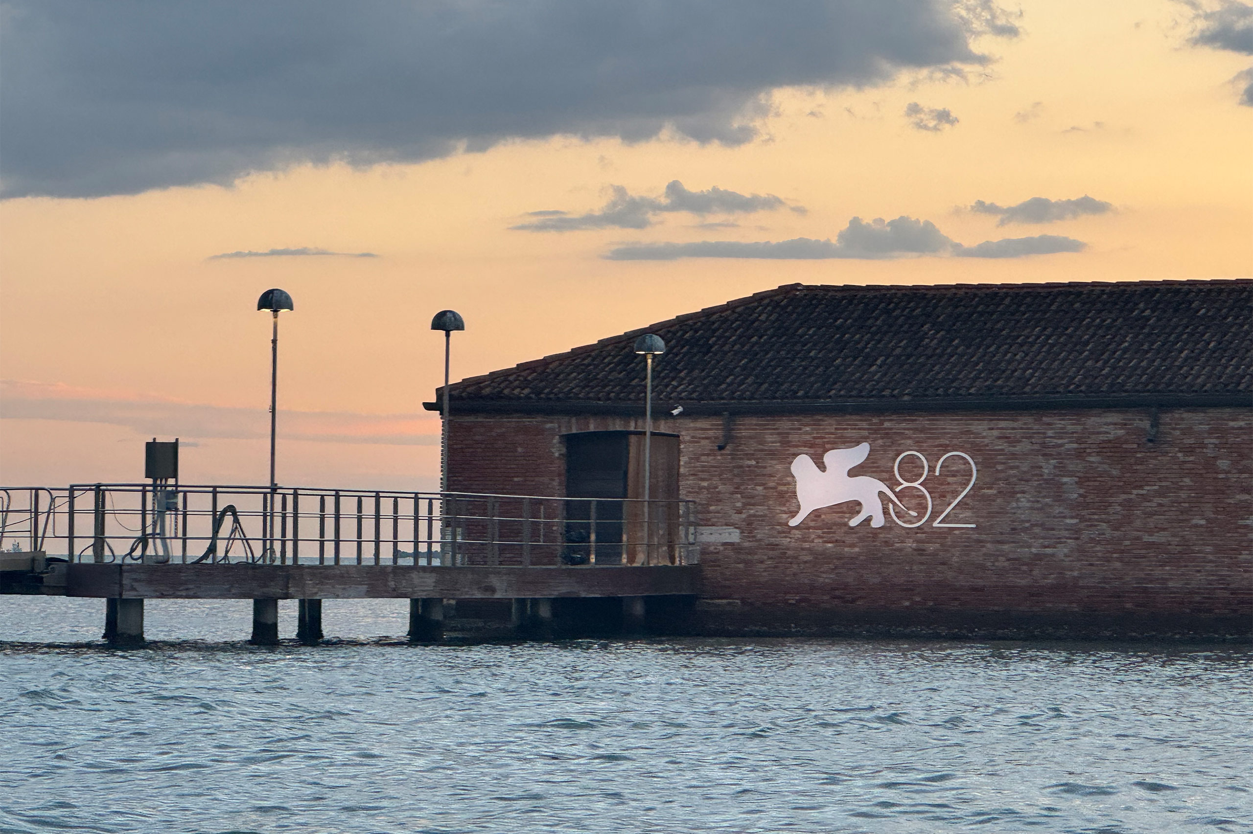1/6 Left: I met Iain and Jane and George MacKay at Casa I Wonder, a private space on the Lido where our wonderful Italian distributors, I Wonder, hosted us for the day. This is actually the villa in front of I Wonder, not I Wonder’s. I was lost, of course… But it’s the only photo I took on the way. Right: George, Iain, Jane and I and Liam Coutts all on our phones! No doubt working out boat logistics, a real concern at the festival.. Especially when dealing with storms and ‘rain never seen before’ in Venice! Photo by Maurizio Bresciani.