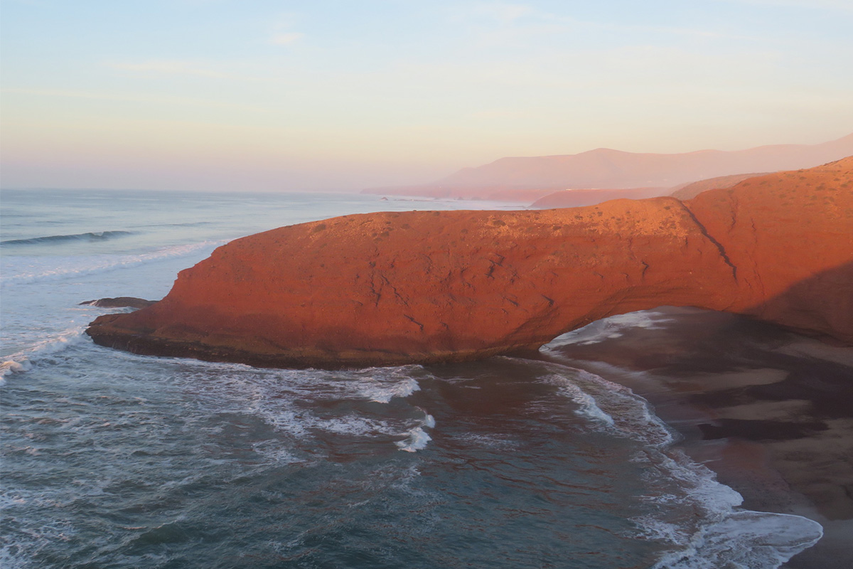 Mirleft is a couple of hours down the road from Agadir. It is a particularly beautiful town, with plenty of beaches, food and shoals of fish. The Anti-Atlas mountains and their peaks loom behind the coastline along the horizon’s clouds. Here, there are more suntans than Sultans thanks to the big surf culture. Most visitors wear rucksacks bigger than their bodies and search for waves, ditching their phones for dusty boots and sandy hair.