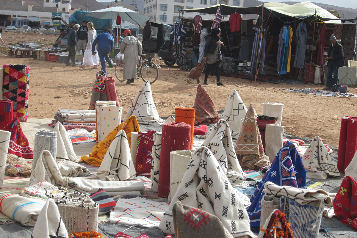 Sidi Ifni is a bigger town filled with whitewashed homes with filigreed patterns on their doors. Only a quick drive from Mirleft, the Sunday Souk is huge, and worth popping into for the cacophony of noise, colour, and energy.