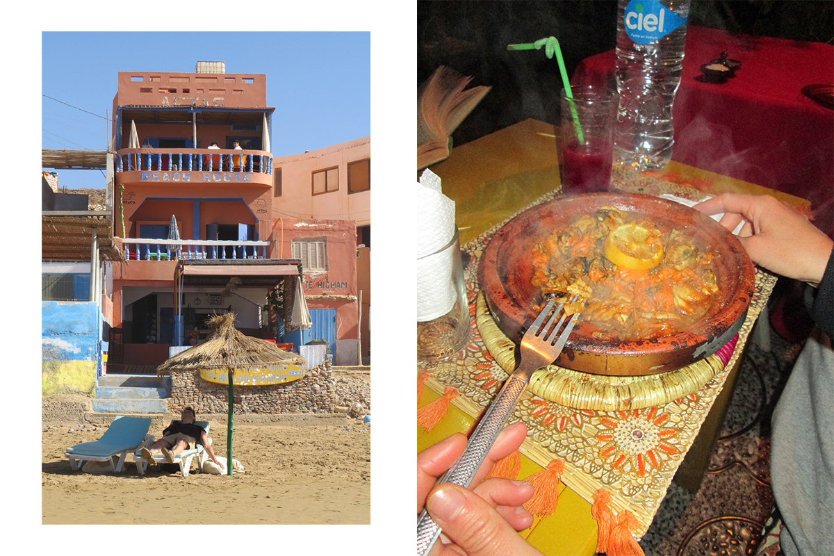 My friend Abder has a few places to stay in Mirleft, and we slept in a comfortable and spacious apartment facing the sea. We were lucky to wake up every morning to fresh swell glistening outside our window, and you can catch the sunset on the rooftop.