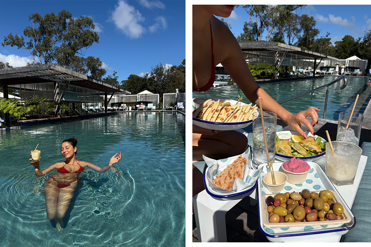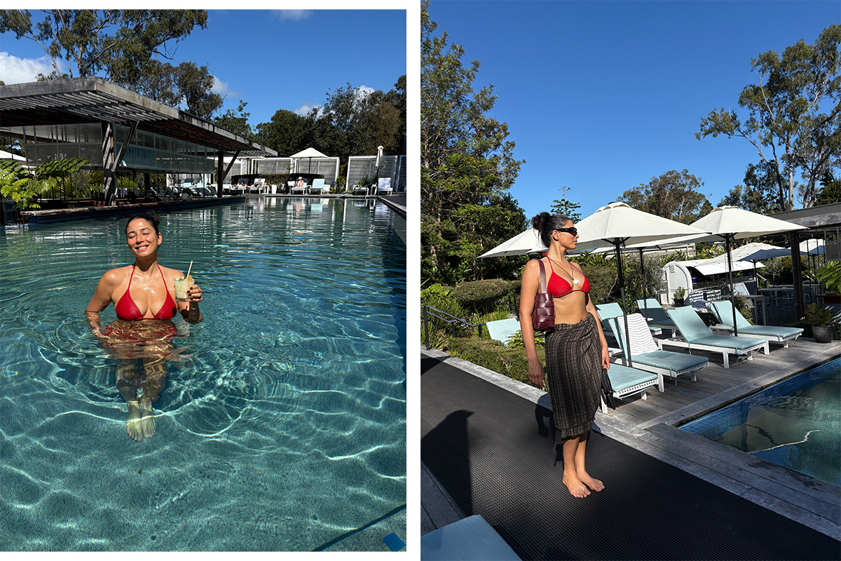 Set among native bushland, beaches and endless blue skies, Elements of Byron is the kind of place that makes it easy to switch off. Nestled in a quiet pocket of northern New South Wales, every touchpoint of the resort invites you to slow down and settle in. It's no surprise, then, that when model, entrepreneur and RUSSH purist Jess Gomes checked in, she leaned in fully — letting the rhythm of Byron take over.